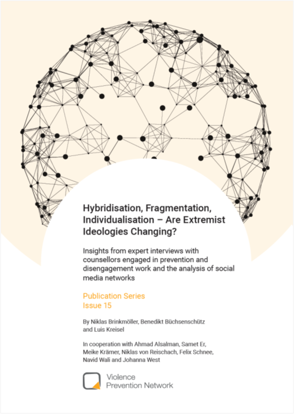 In 2025, Violence Prevention Network published in its publication series the issue “Hybridisation, Fragmentation, Individualisation – Are Extremist Ideologies Changing?“ by Niklas Brinkmöller, Benedikt Büchsenschütz and Luis Kreisel. The study investigates whether extremist ideologies are currently undergoing structural transformation and how these developments affect prevention and disengagement work.